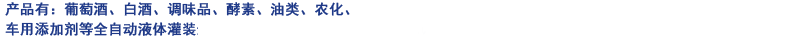 產品有:葡萄酒、白酒、調味品、酵素、油類、農化等全自動液體灌裝生產線